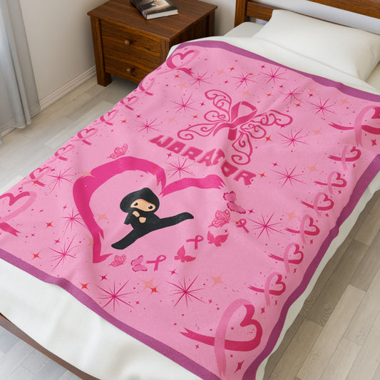 Breast Cancer Warrior Velveteen Lap Blanket 50" x 60"